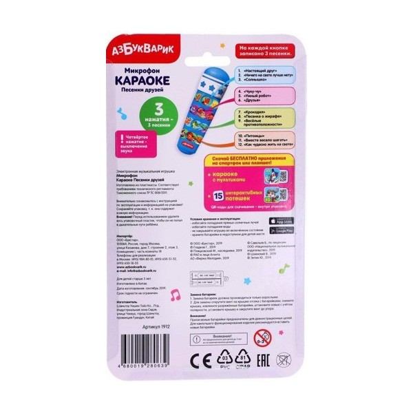 Игрушечный микрофон знает 12 популярных песенок из мультиков: