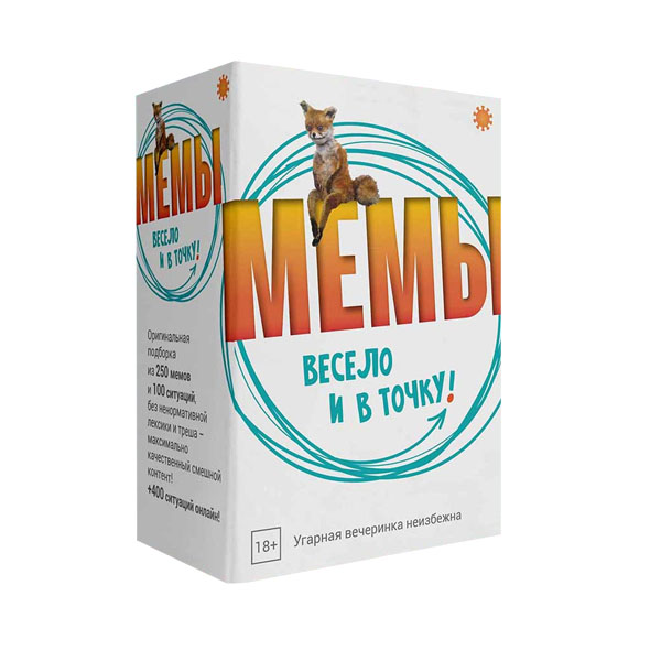 Комплектация: 250 картинок-мемов, 100 карт-ситуаций, правила игры.