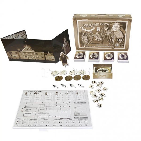 Опасные гости – инновационная настольная игра-детектив про тайны и расследования, в которой сотнями разных способов воссоздается ночь убийства мистера Уолтона. Вы никогда не сыграете две одинаковые партии!