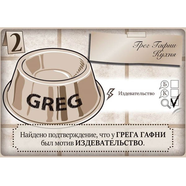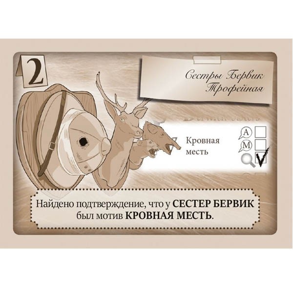 Следовательно, чтобы обнаружить убийцу, мотив и орудие преступления, недостаточно вычеркнуть часть вариантов: вам нужно будет сделать вывод на основании информации, полученной во время игры.