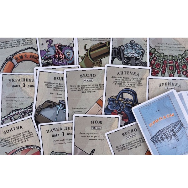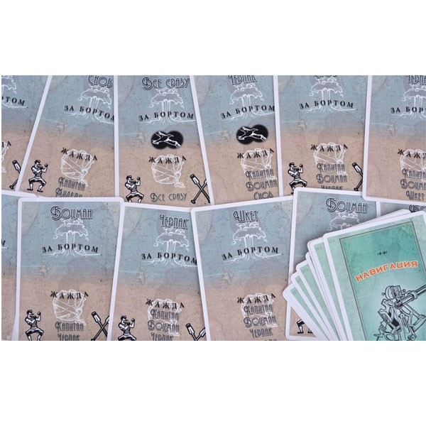 Итак, основная задача игроков – добраться живыми до ближайшей суши. Но существует несколько проблем: игроки испытывают жажду, могут свалиться за борт, получить увечья в драке… А драться есть за что! Это и припасы, и оружие, и ценные предметы, но иногда самое важное – место под солнцем на шлюпке. Чем вы ближе к трюму с припасами, тем больше у вас выбор, что оставить себе. А вот игрок у штурвала, решает куда плыть, да и вообще, как рулить… Что может послужить даже «несчастному» случаю! Добавьте сюда 6 уникальных персонажей с различными способностями, вариативность действий в свой ход, возможность обмениваться припасами и помогать друг другу, механику с тайными друзьями и врагами, и то, что всего можно добиться и мирным «дипломатическим» путём – представили, что вас ждёт?