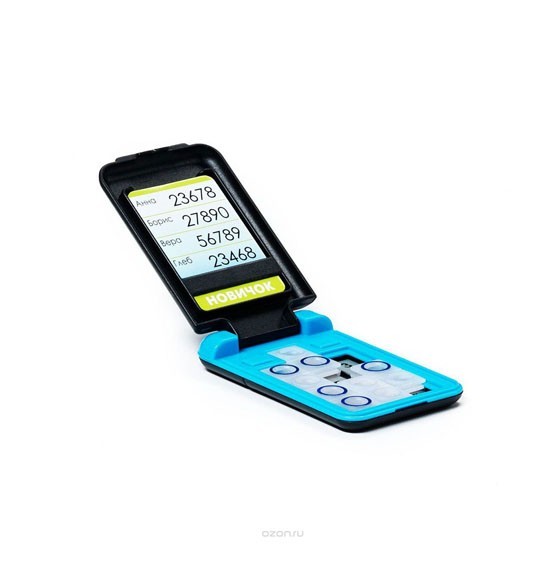 Самый доступный и совершенно безопасный, яркий и модный персональный смартфон принесет удовольствие как ребенку, так и взрослому. Кому позвоним по новому смартфону? Компактный продуманный дизайн позволит не отвлекаться от игры даже в стесненных дорожных условиях. Карточка с заданиями помещается во внутреннее отделение дисплея «смартфона». Кнопки на клавиатуре игры необходимо перемещать таким образом, чтобы все цифры из задания стали видны сквозь отверстия на кнопках. Игрушка с заданиями от простых — для семилетних малышей, до сложных — для опытных любителей логических головоломок. Увлекательная игра скрасит время вынужденного ожидания и длительного путешествия.