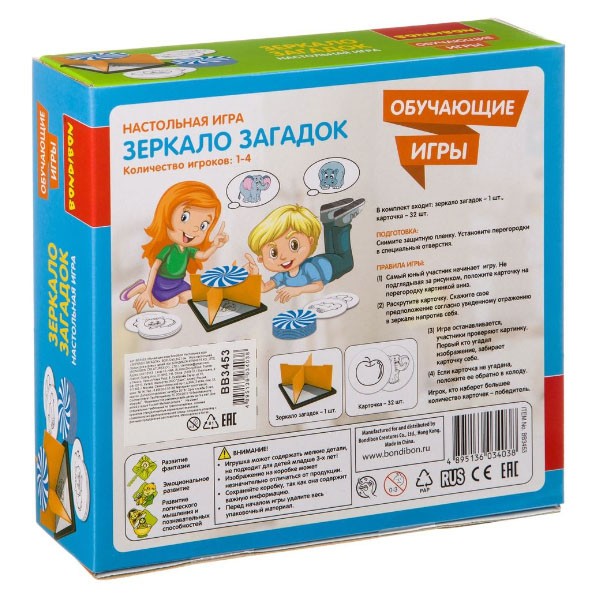 Комплектация: карточки – 32 штуки, зеркало загадок — 1 шт.