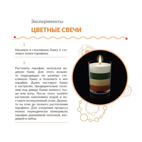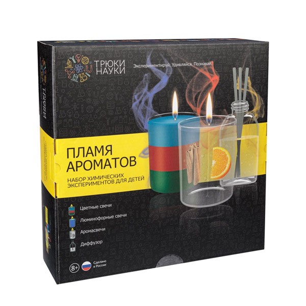Эксперименты в наборе: Цветные свечи, Люминофорные свечи, Аромасвечи, Диффузор